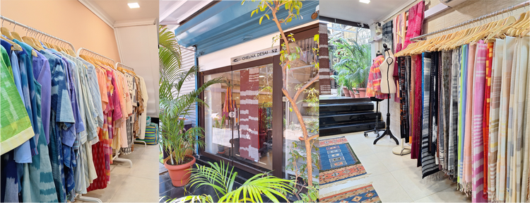 At Chelna Desai Handwoven, we create textiles rooted in India's handwoven craft traditions. Our work is a quiet dialogue between heritage and modernity where we collaborate with artisan communities in Pochampally, Maheshwar & Kutch preserving each distinct process integrity while offering versatile, contemporary products suited to global markets.