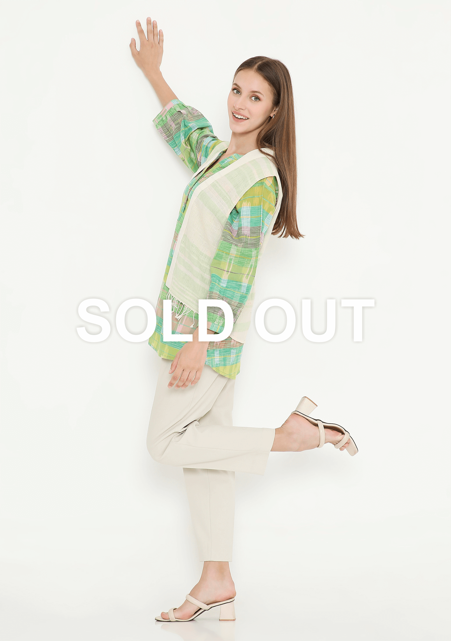 Woven in Pochampally, this very special 100 % cotton banded ikat kurti with a mandarin collar full sleeves and roomy side pockets is perfect for summer. The interplay of shades of green with alternating space dyed bands gives it an interesting visual texture. Compliment it with a cool kala cotton sleeveless jacket and you at once accomplish a great semi formal look !
